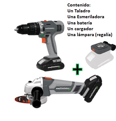 GLADIADOR KIT TALADRO 1/2 TP813/18 + ESMERILADORA AA 815/18 1BATERIA + LAMPARA