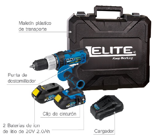 UJ ELITE TALADRO PERCUTOR INALAM 1/2 20V 2 BAT 2AH (XID20)